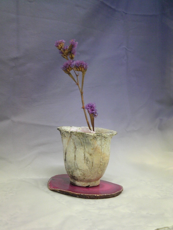 作品に花を挿してみました。