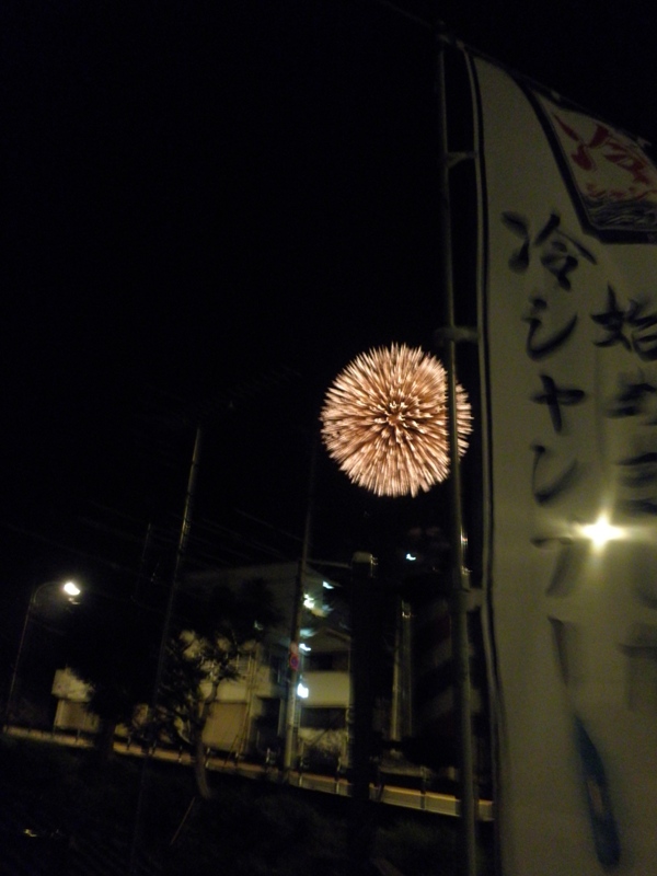 8月5日青梅市の花火大会、お店の屋根のベランダで花火見物 良い花火でした。お月さんも気持ち良く花火見物していました。 また来年の花火大会が楽しみです。もしよかったら来年 一緒に花火見物しませんか?どなたでもいいですよ*****